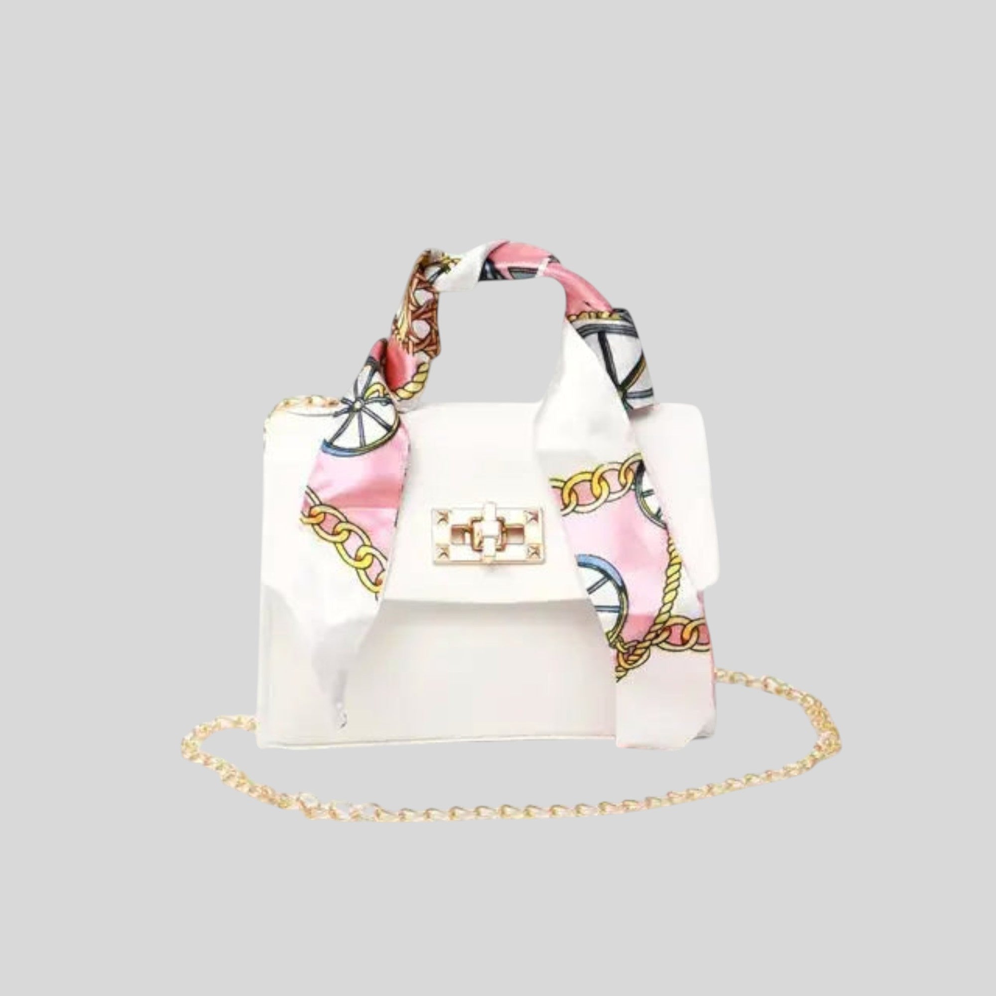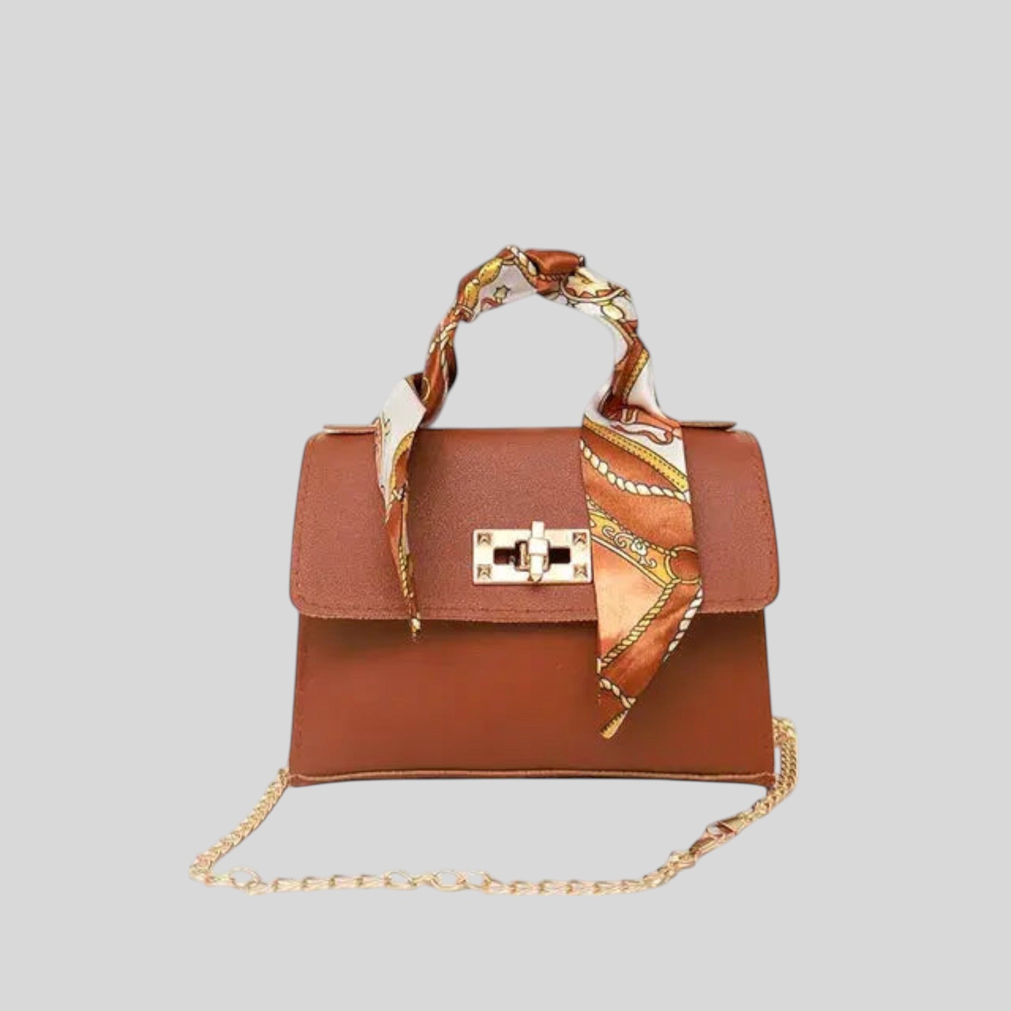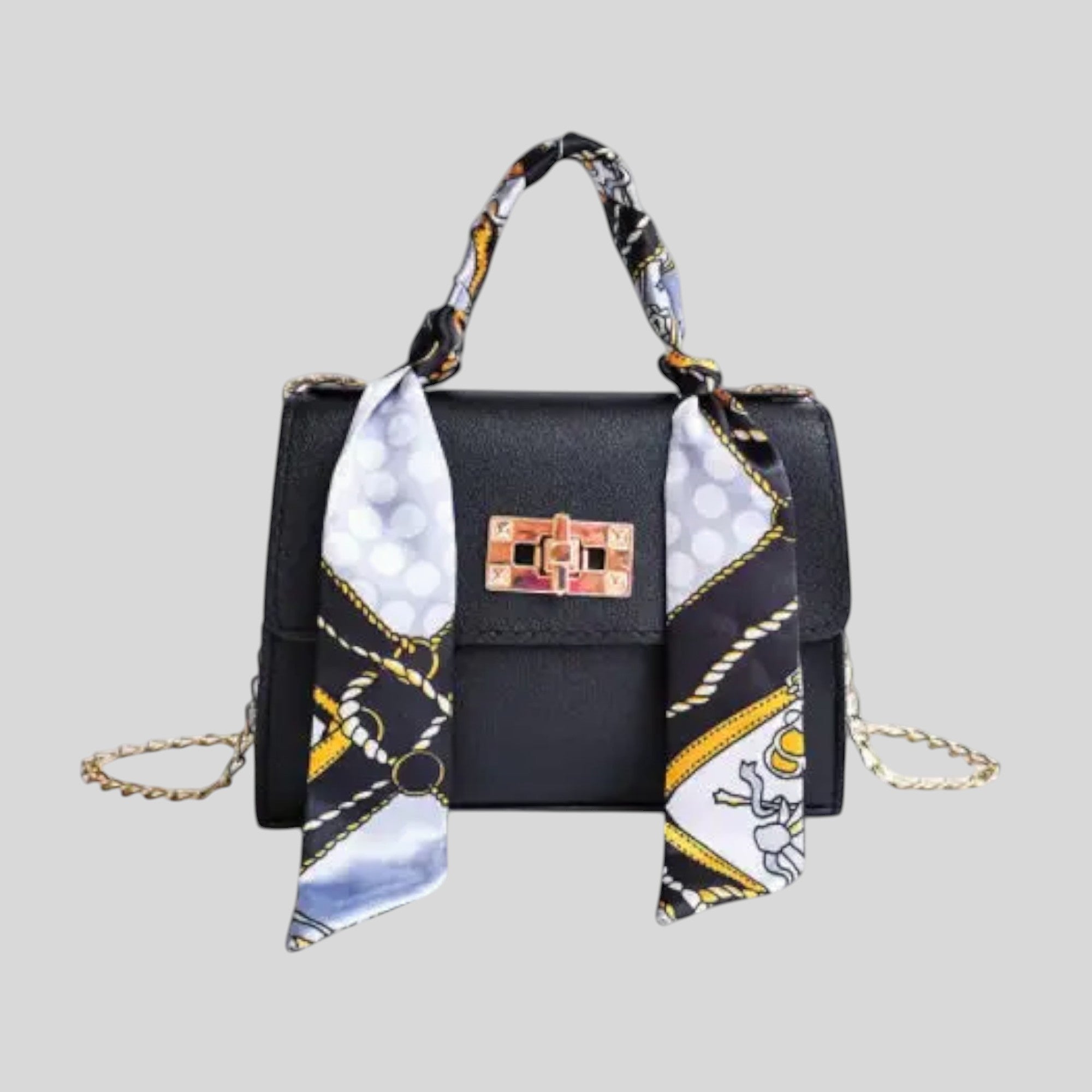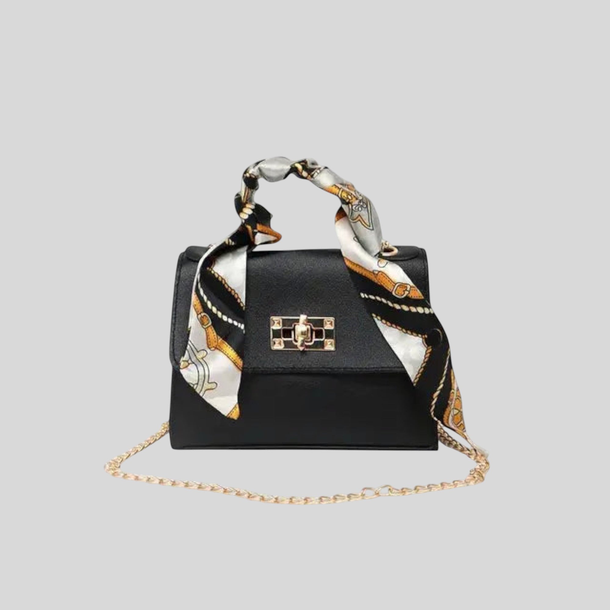 • Елегантни детайли: Златната закопчалка и верижки осигуряват луксозен завършек.