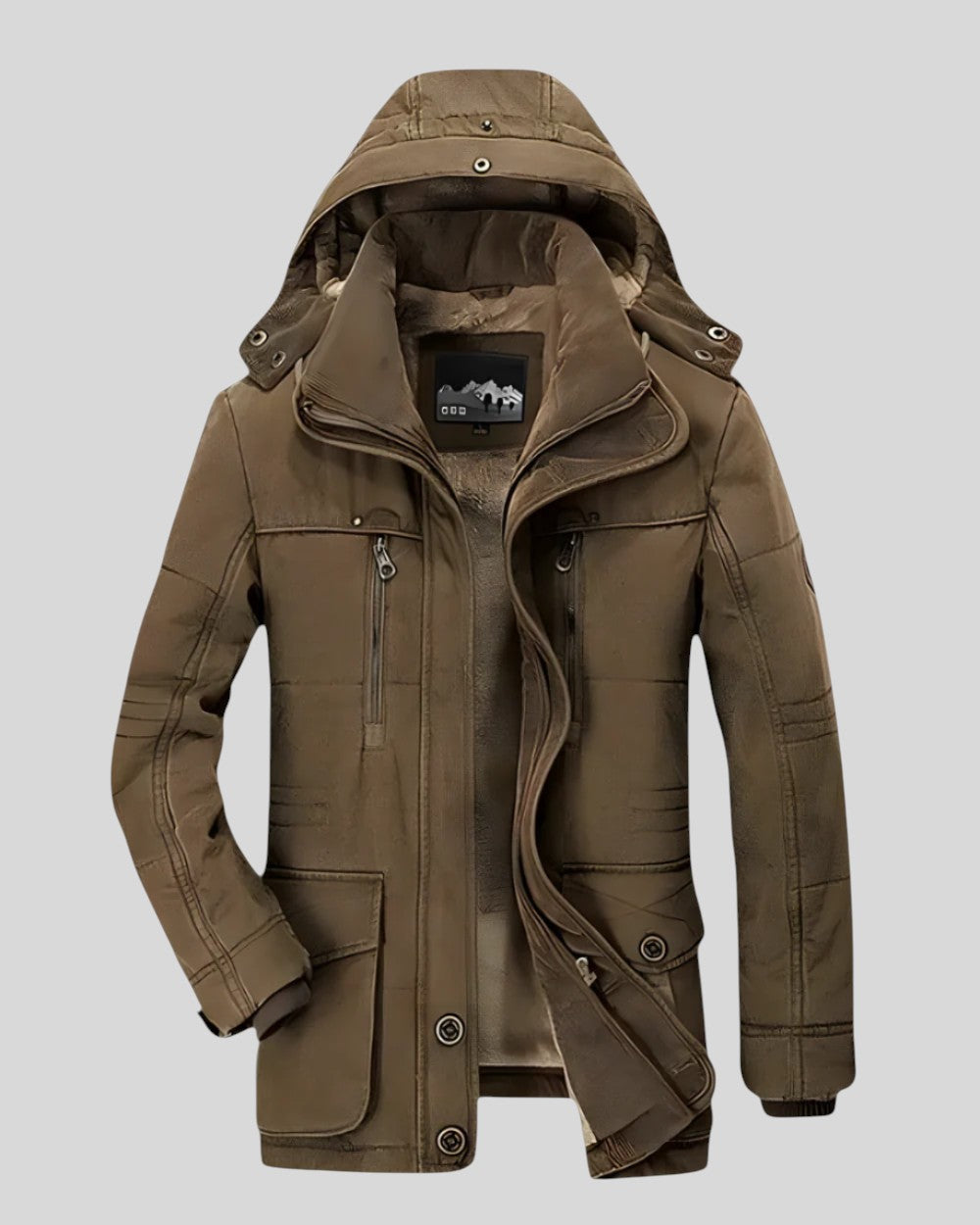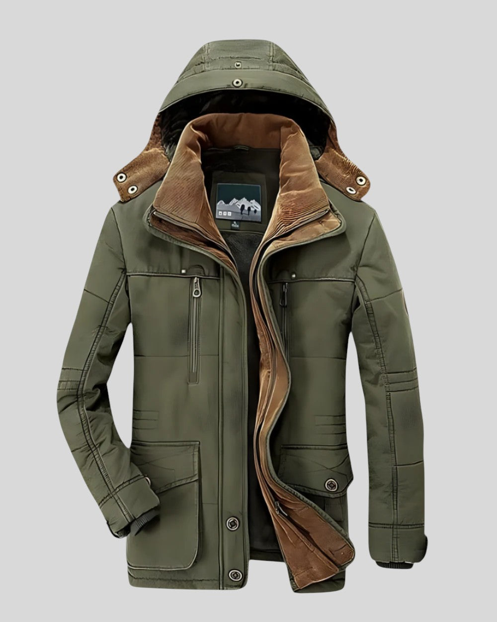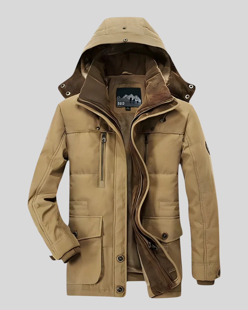 Това зимно палто е идеалната дреха за мъжа, който търси да съчетае модерен стил с максимална защита от студ. Със здрав дизайн и детайли, предназначени за зимата, то е перфектният избор да добавите слой функционалност и елегантност към гардероба си, независимо дали е за дейности на открито или за ежедневно носене в града.