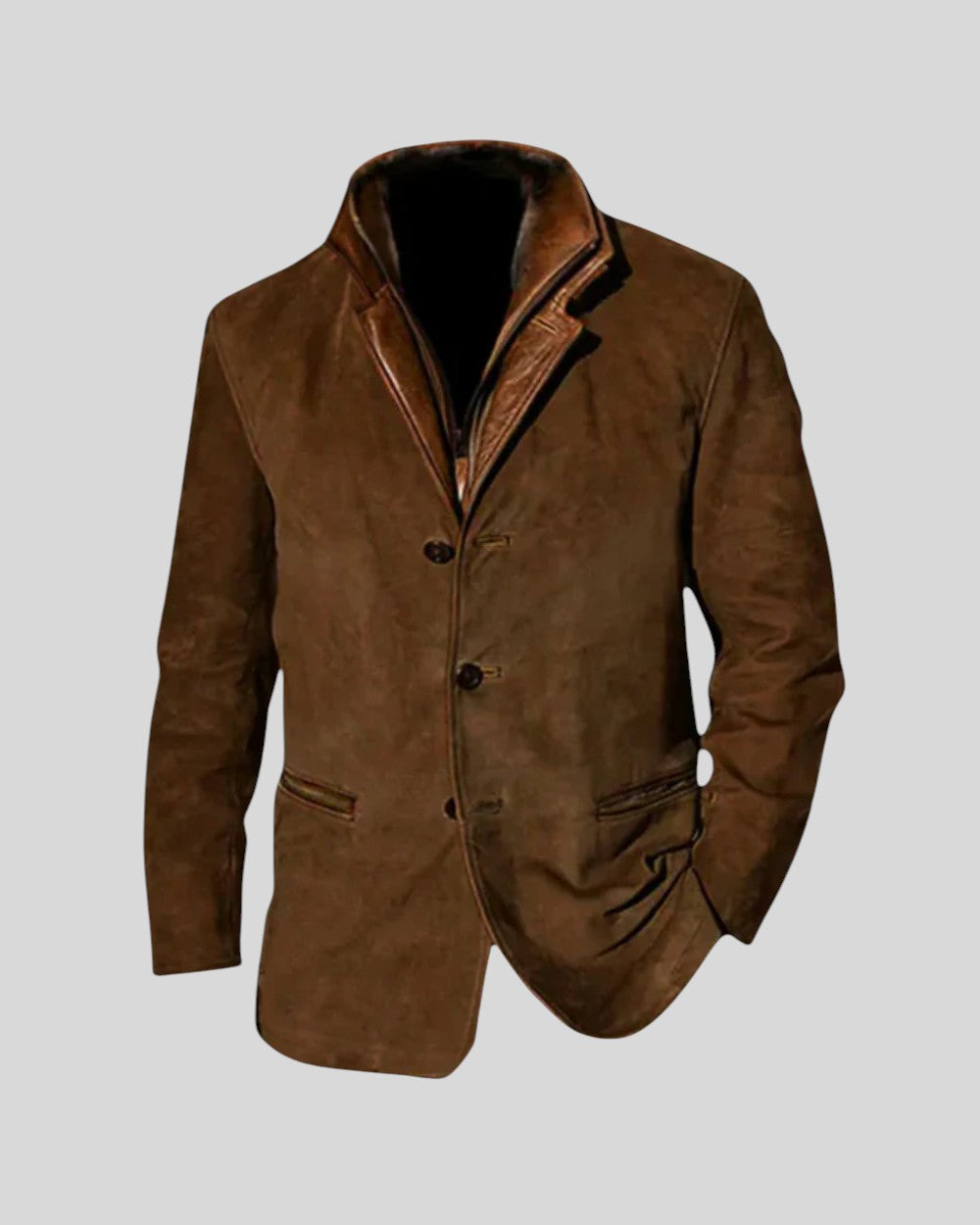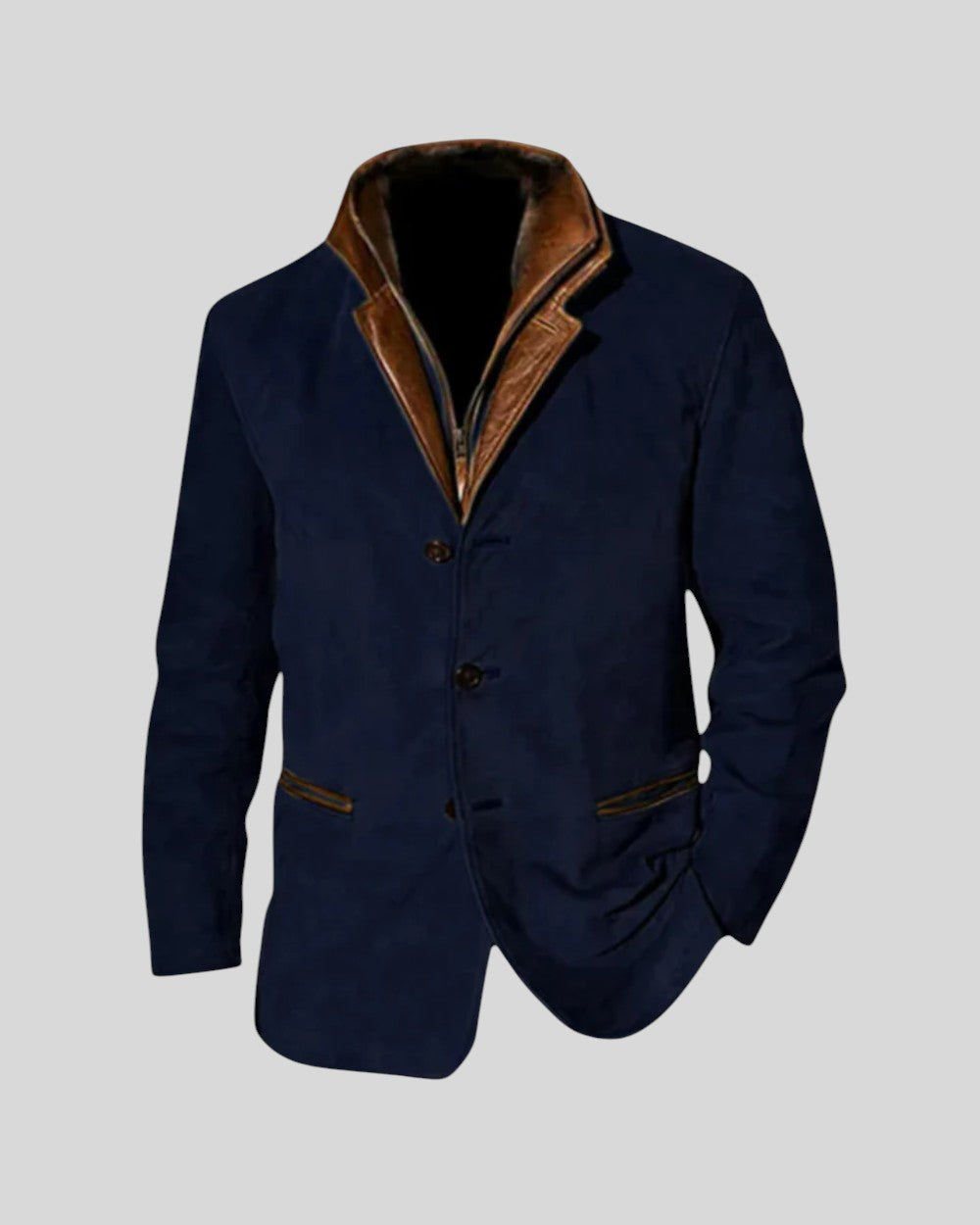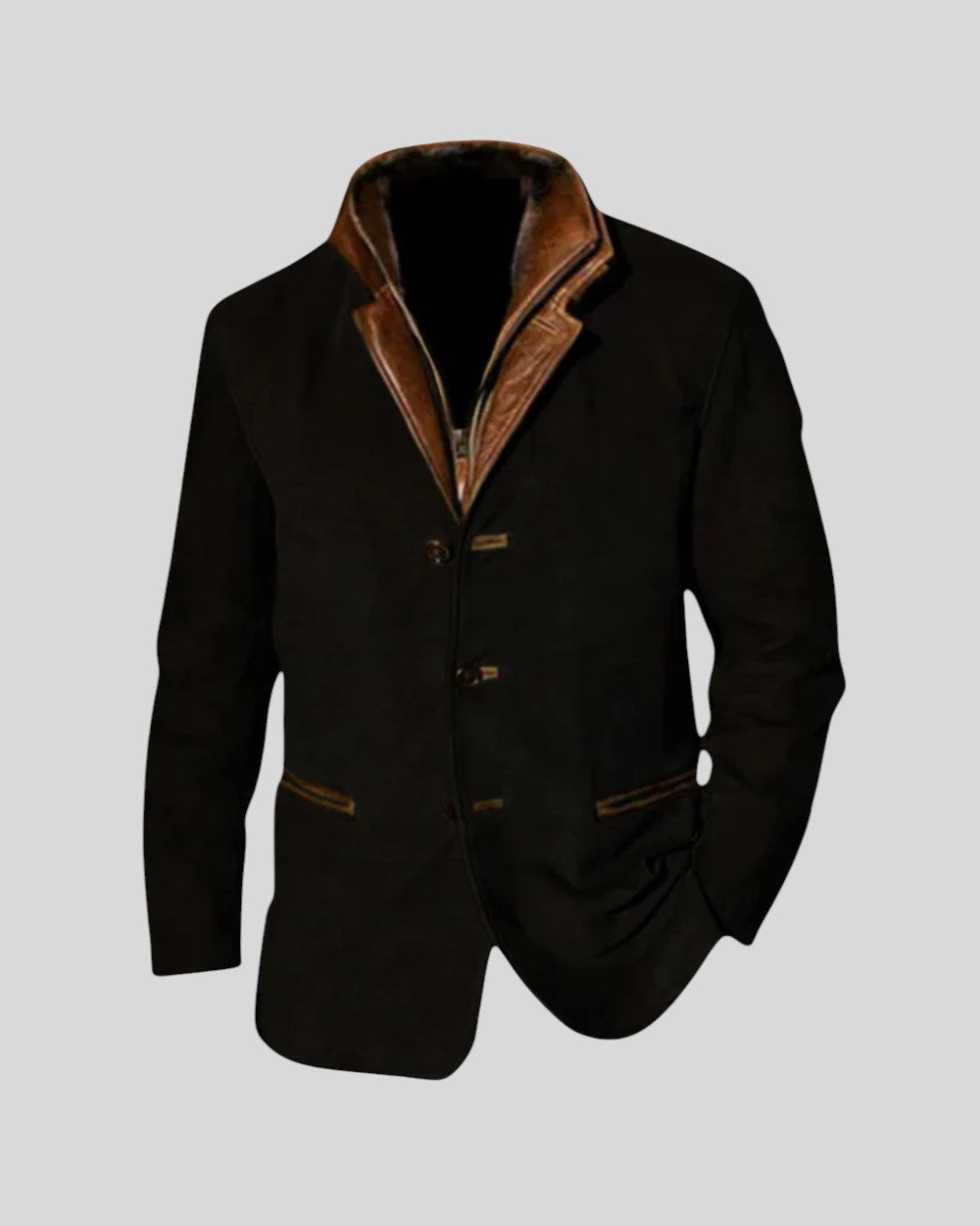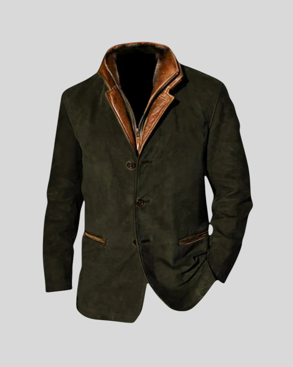Това винтидж яке е идеалната дреха за мъжа, който търси перфектния баланс между класически стил и изключителен комфорт. С изтънчен дизайн и кожени детайли, то е перфектният избор да добавите слой елегантност и индивидуалност към гардероба си, независимо дали е за официално събитие или за неформална вечеря.