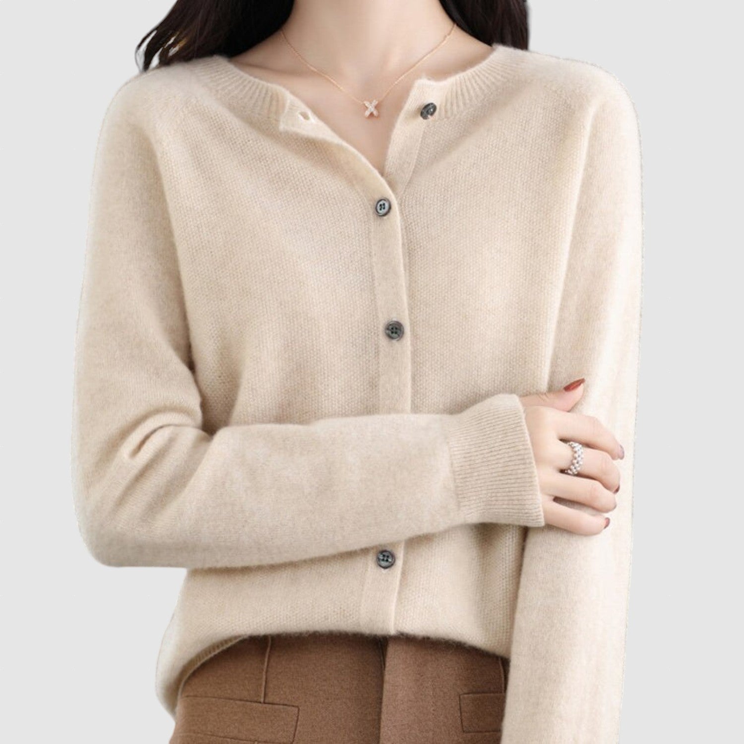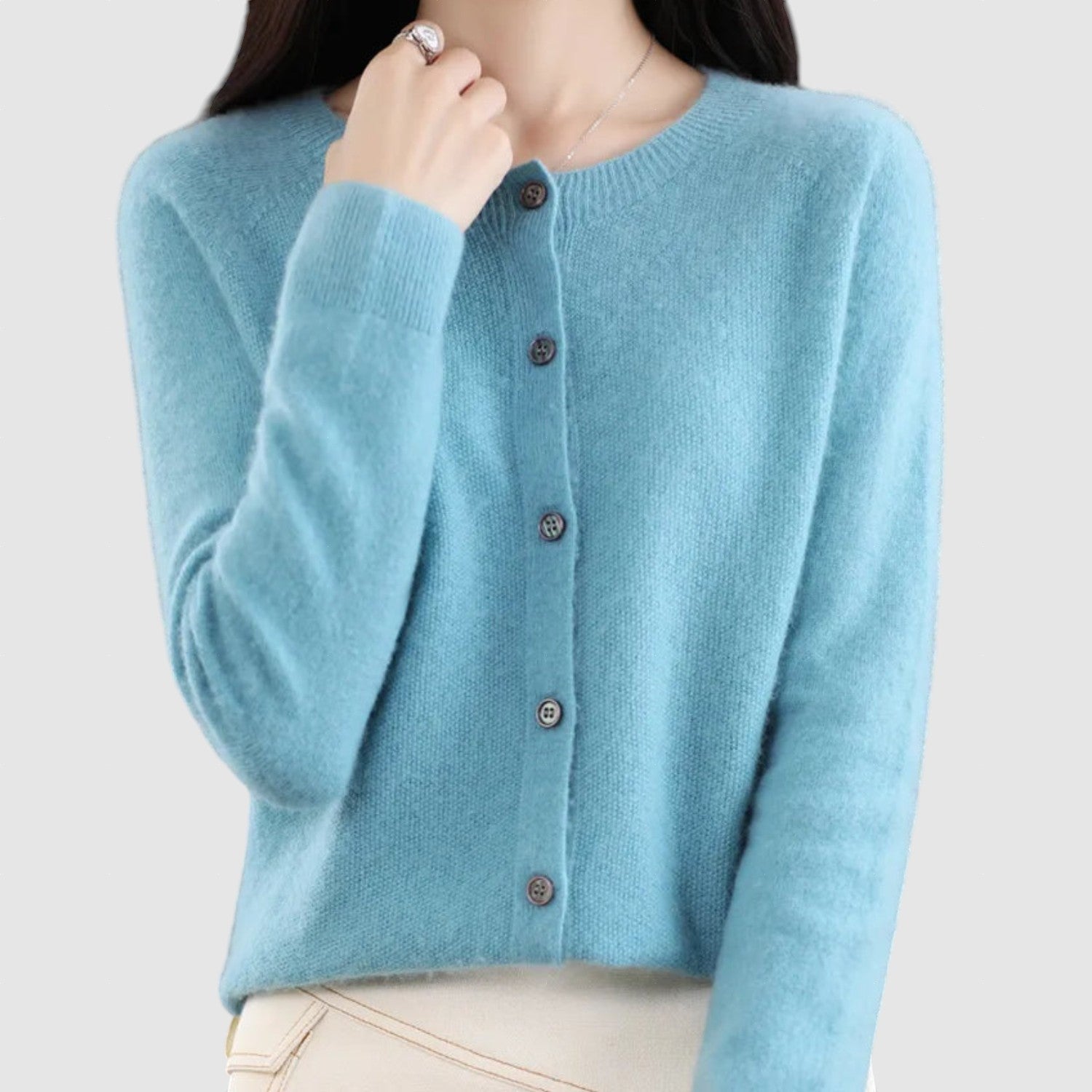 Открийте този прекрасен плетен кардиган, идеалното допълнение към вашия есенно-зимен гардероб! Този луксозен кардиган с дълги ръкави, кръгло деколте и закопчаване с копчета излъчва комфорт и стил, а благодарение на едноцветния си дизайн е многофункционален.