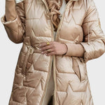 Това палто е предназначено за тези, които искат да посрещнат есента с топлина и елегантност. Меката памучна смес гали кожата, а ватираната подплата и вградената качулка предлагат защита от вятър и дъжд. Надежден съюзник, когато времето стане непредсказуемо и имате нужда от практична дреха, без да жертвате стила.