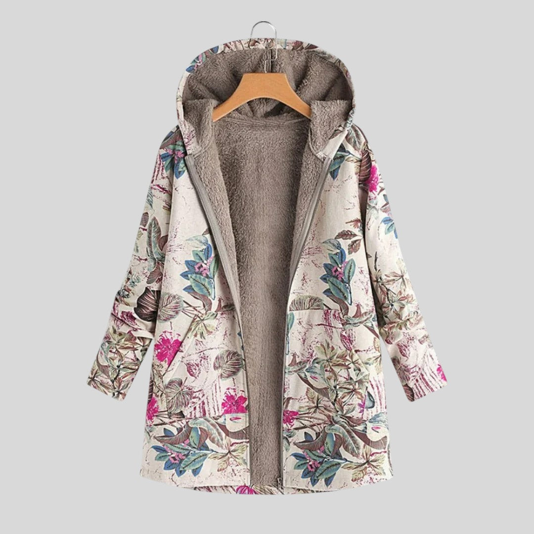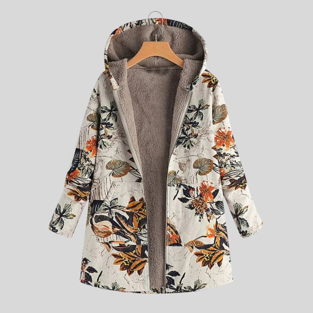 Облечете се в топлина и непреходен чар с това палто. Създадено за тези, които ценят комфорта и изтънчеността, това палто внася изящен флорален мотив в ежедневния ви гардероб. Независимо дали се разхождате в свежия есенен въздух или се обличате за хладна вечер, това палто ще ви осигури комфорт, като същевременно ще добави непринуден стил.