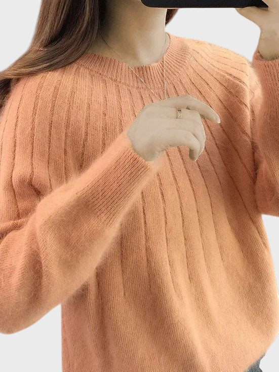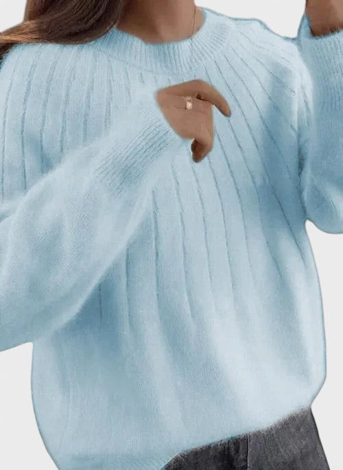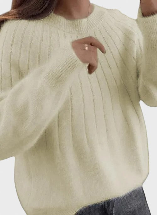 Irena™ - Пуловер с кръгло деколте и пухкава яка