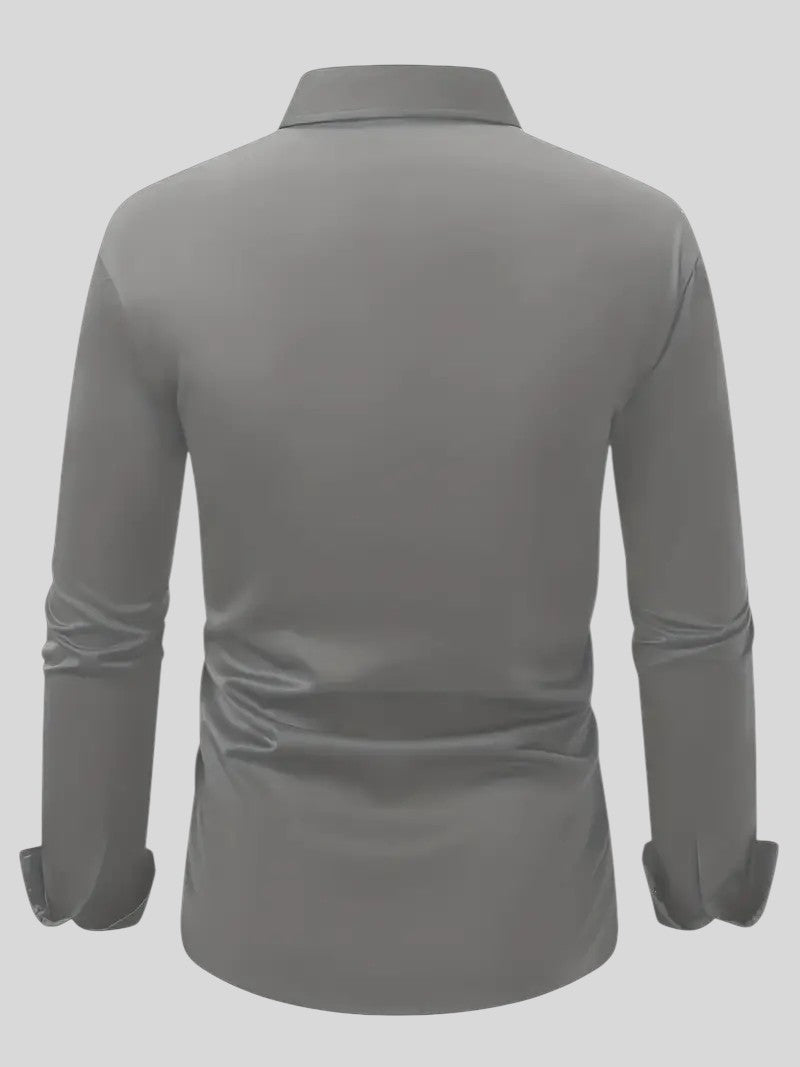 Защо да се задоволявате с основни неща, когато можете да имате риза, която ви кара да се откроявате? Тази риза с дълъг ръкав е перфектният баланс между изтънченост и функционалност за всеки повод. Със своя класически дизайн и безупречна кройка, тя ви гарантира, че се чувствате уверени и елегантни, независимо дали сте в офиса или на специално събитие.