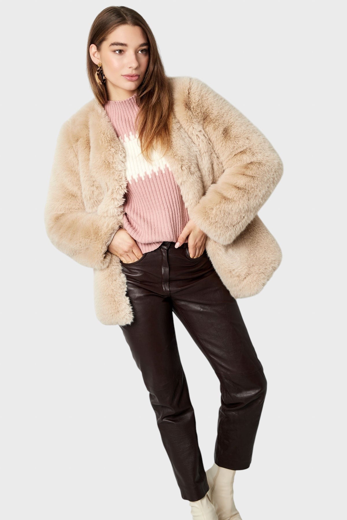 Това меко палто е ключова част от зимния гардероб, която балансира върховен комфорт с непринуден блясък. Със своята богата, елегантна текстура, то мигновено повдига всяка визия , гарантирайки, че ще останете топли и модерни, независимо от повода. То е олицетворение на уютен и достъпен лукс.