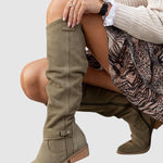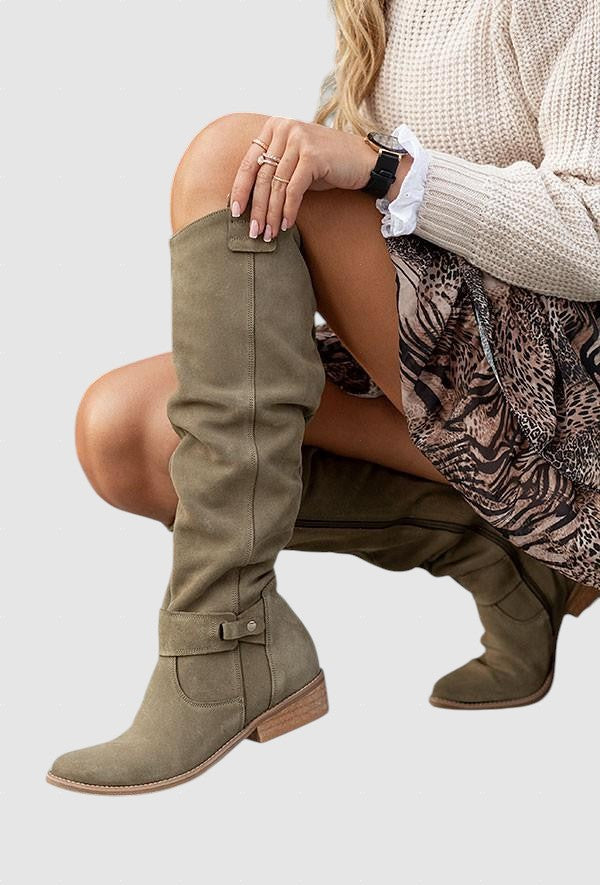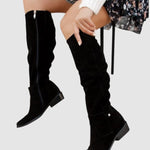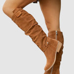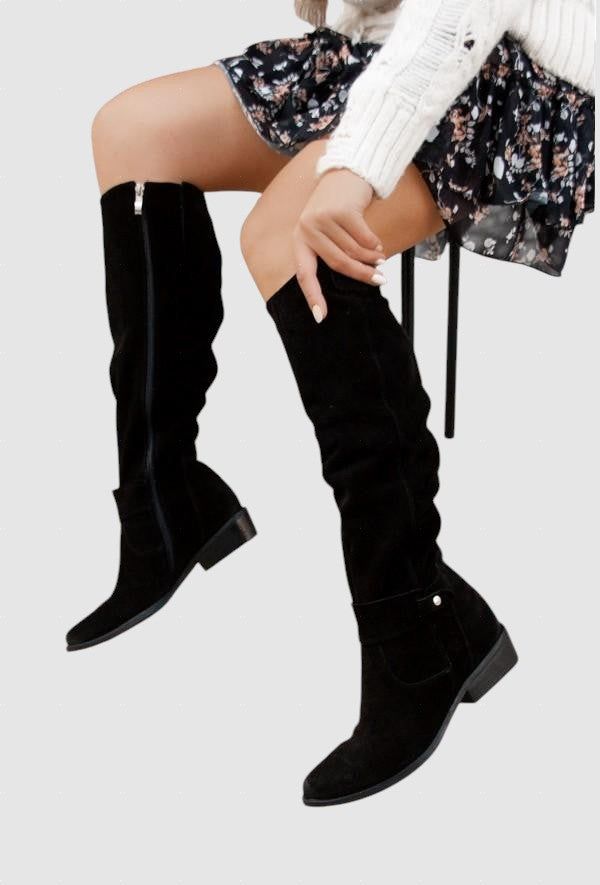 Тези велурени ботуши са предназначени за тези, които искат да съчетаят комфорт и топлина със стилен външен вид. Изработени от висококачествен велур и подплатени с меки материали, тези ботуши поддържат краката ви топли през целия ден, дори и в най-студените зимни дни. Идеални за ежедневно носене, те се съчетават перфектно с всяко ежедневно зимно облекло.