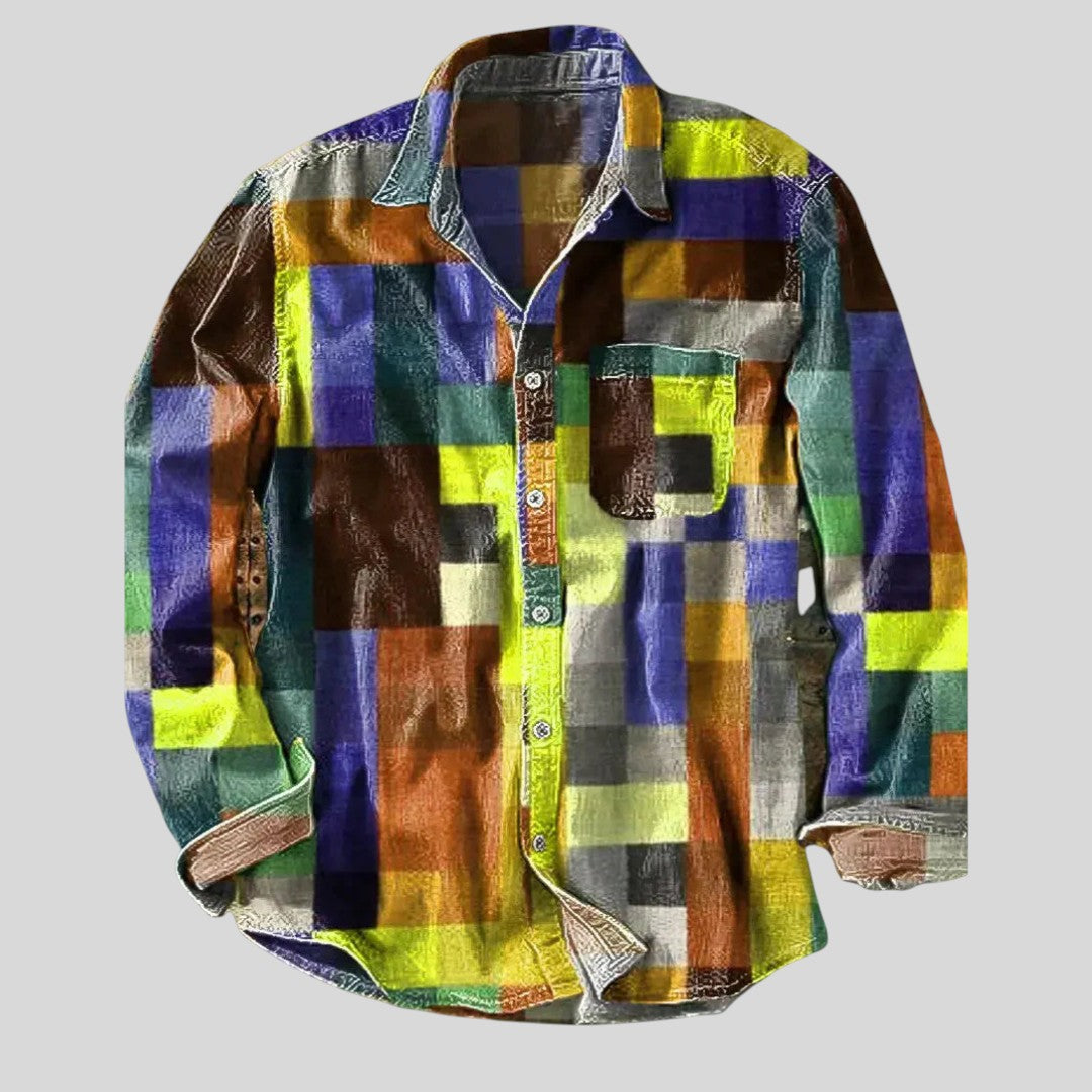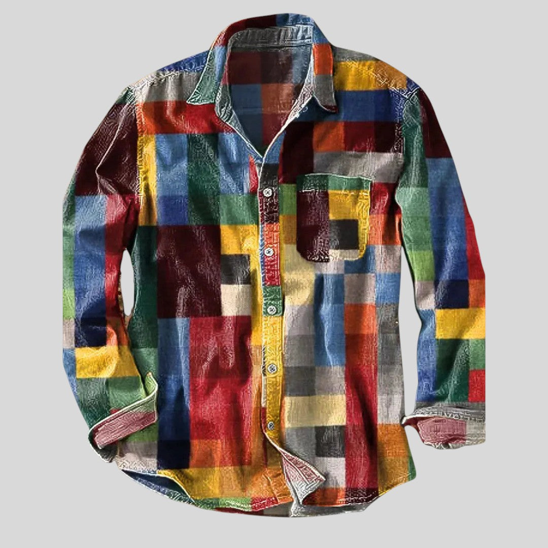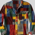Krasimir™ - Винтидж риза с дълъг ръкав с дизайн на дъга.