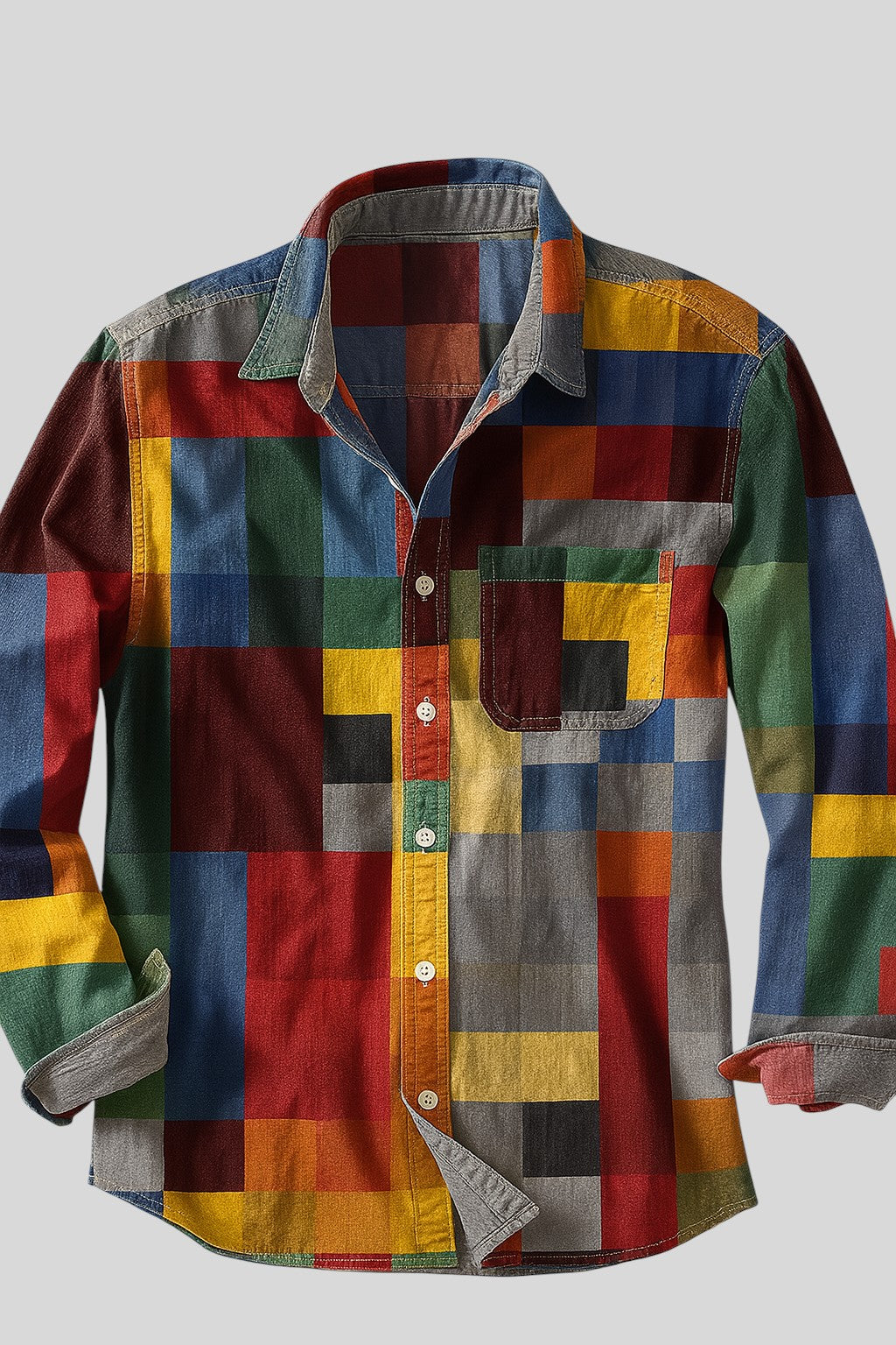 Защо да се задоволявате с основните неща, когато можете да имате дреха, която изразява вашата жизнена индивидуалност? Тази риза с дълъг ръкав и пъстър кариран мотив е перфектната комбинация от стил и комфорт за всеки сезон. Със своя смел дизайн и удобна материя, тя гарантира, че ще се чувствате комфортно и ще изглеждате безупречно, независимо дали за небрежна разходка или за вечерно излизане с приятели.