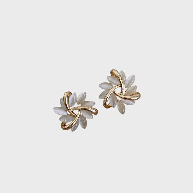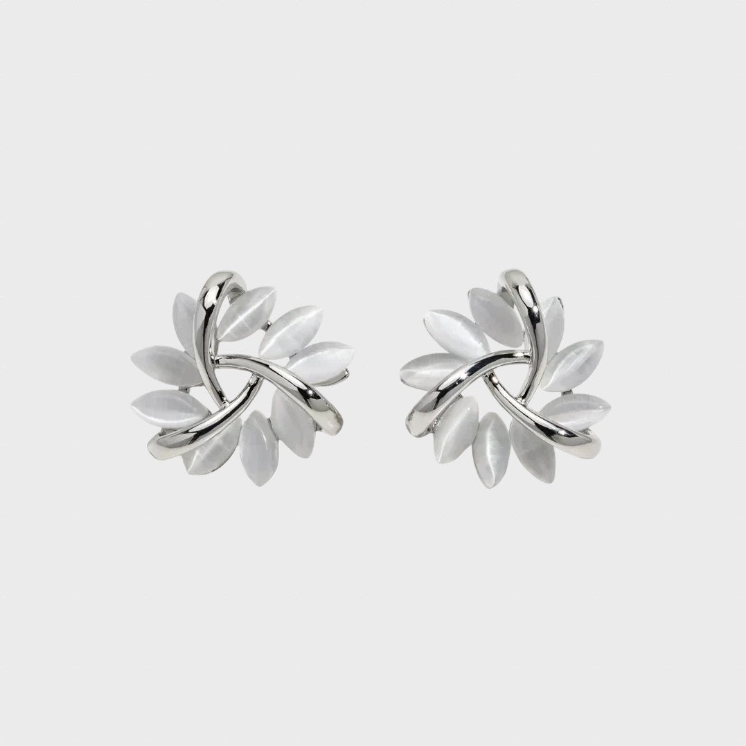 Тези преплетени флорални кръгли обеци съчетават хармонията на природата с артистичен щрих. Сложният им дизайн , съставен от елементи, напомнящи венчелистчета или листа, подредени в кръгла форма, е елегантно рамкиран от метален детайл. Тези обеци на винт са идеалният избор за тези, които търсят гъвкавост и фин чар, идеални за добавяне на дискретен и изтънчен щрих светлина към вашата визия.