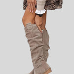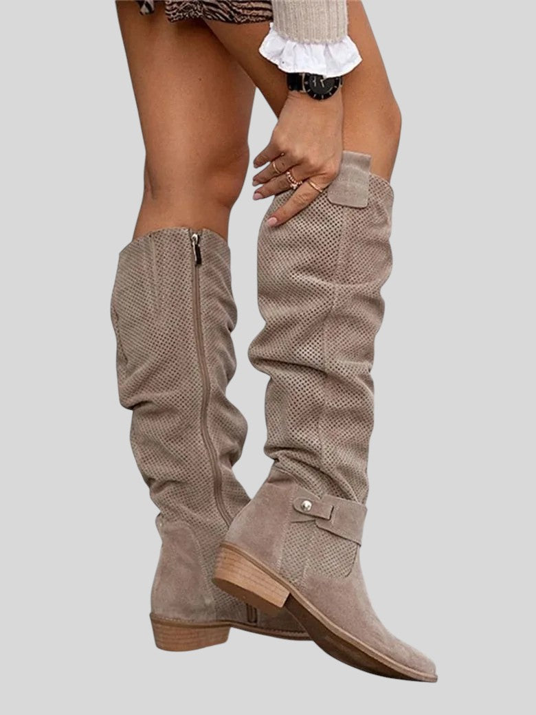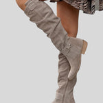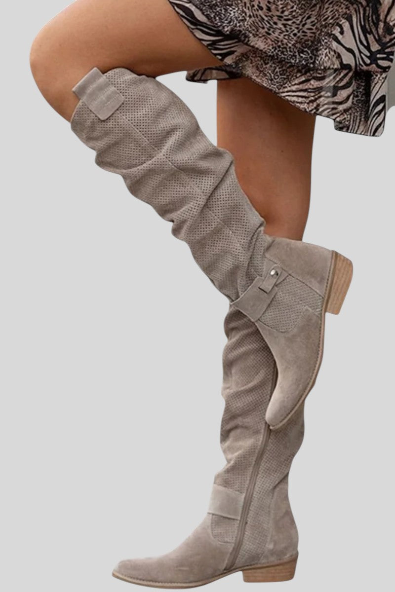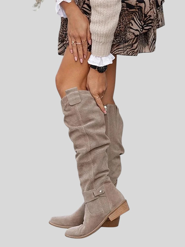 Открийте перфектната комбинация от класически стил и комфорт с нашите елегантни ботуши до коляното. Проектирани да подчертаят силуета ви, тези ботуши са идеални за всеки повод и добавят нотка изтънченост и увереност към всяко облекло или визия, от небрежна елегантност до по-официални събития.