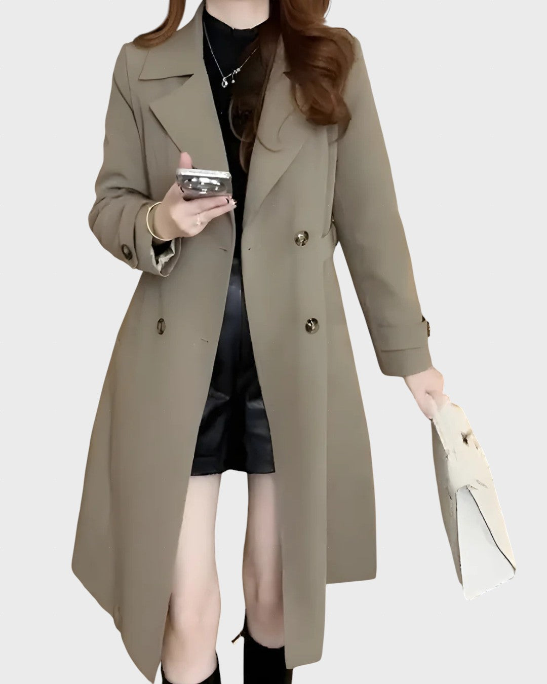 • Класически и елегантен стил: Закопчаване с двойно копче за непреходен вид и яка с ревер, напомняща за класически дизайн от габардин. Регулируемият колан на талията осигурява елегантна, прилепваща фигурата кройка.