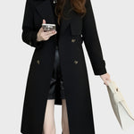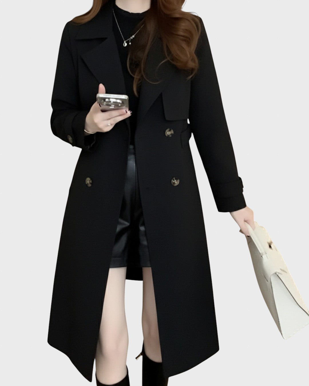 Посрещнете ветровито време със стил с това дълго палто с двойно закопчаване, което съчетава класически чар с модерни детайли. Дизайнът неусетно подчертава силуета ви, а здравият завършек ви предпазва от вятър и лек дъжд.